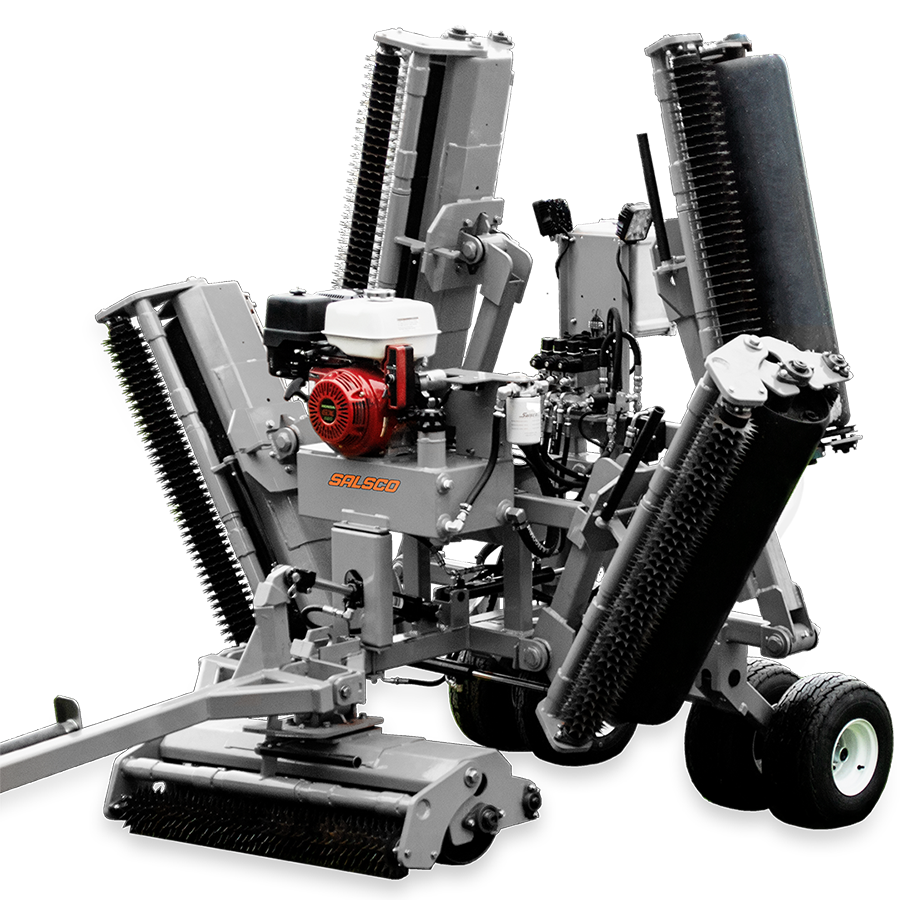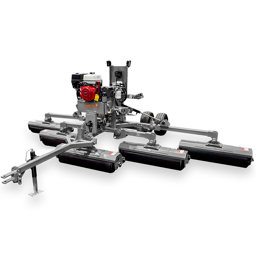 Salscos största vält har en arbetsbredd på hela på 457 cm och passar därmed att underhålla fairways och stora gräsytor. De fem flytande vältrullarna följer underlaget oberoende av varandra, vilket säkerställer jämn och konsekvent kontakt även i ojämn terräng samtidigt som underlaget och spelbarheten förbättras.